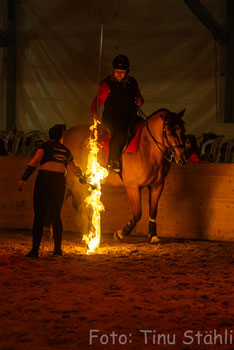 Seit 2024 bin ich mit dabei als Feuerkünstlerin. Da ich ein Leben ohne Pferde nicht kenne, ist es umso schöner, dass ich meine Passion Pferde und Feuerkunst kombiniert habe.